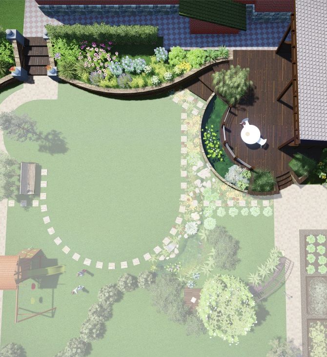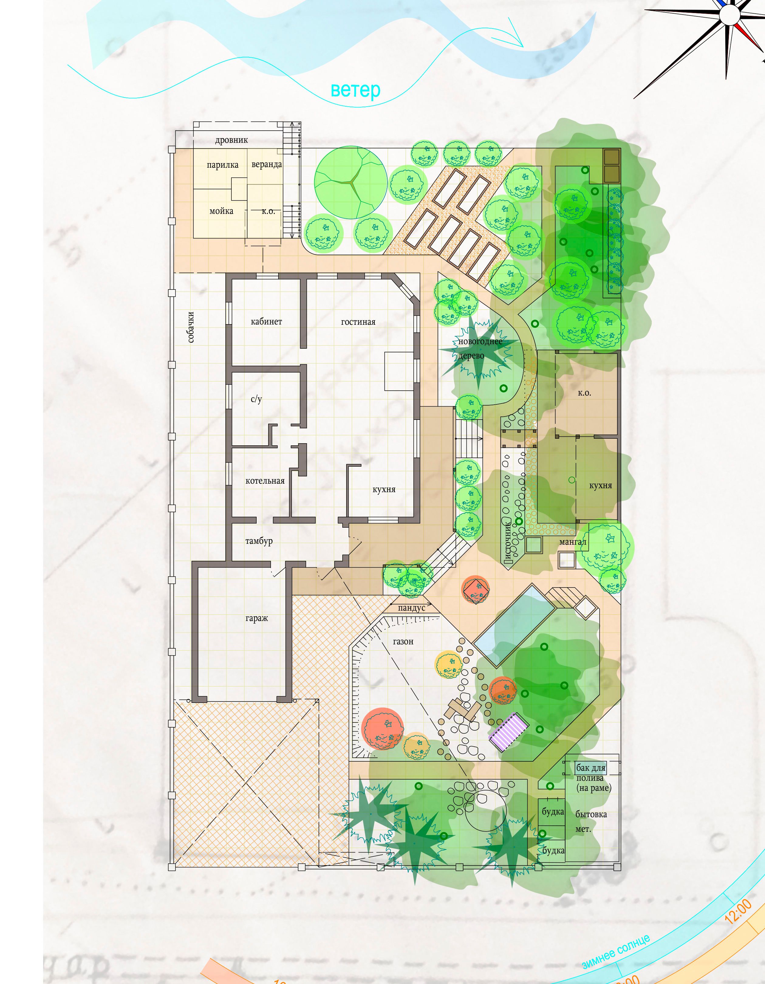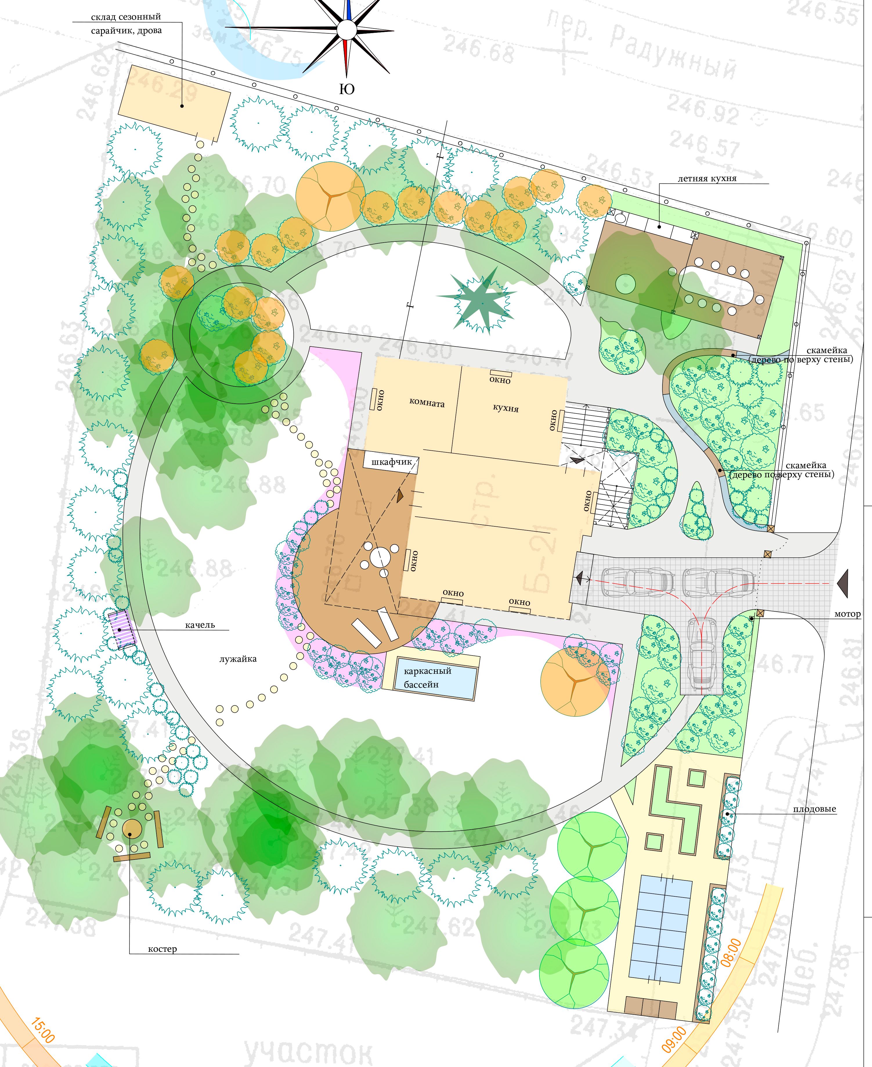 При разработке проекта частного сада главным приоритетом являются желания заказчика. Плюс удобство эксплуатации, оптимизация затрат при строительстве и бережность к уже имеющимся элементам благоустройства и ресурсам.